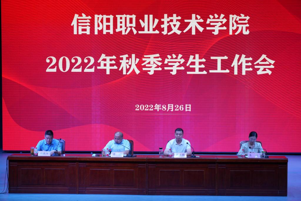 8月26日上午,学校在图书馆一楼报告厅组织召开2022年秋季学生工作会。党委委员、工会主席黄新出席会议,学生处、安保处、团委等部门负责人,各二级学院书记、副书记、学管副院长、学工办主任、团总支书记、全体专兼职辅导员,学生处全体工作人员参会。会议由学生处长殷来宾主持。