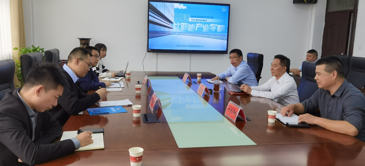 为加快推进现代职业教育体系建设改革重点任务,深化产教融合校企合作,11月3日,比亚迪股份有限公司人力资源处校企合作经理杨双喜、深圳风向标产教融科技有限公司总经理荣维涛、校企业务经理李丹、河南区域总经理沙宝强一行到我校考察校企合作,副校长周有国与来宾进行座谈交流。教务处、汽车与机电工程学院主要负责同志参加座谈会。