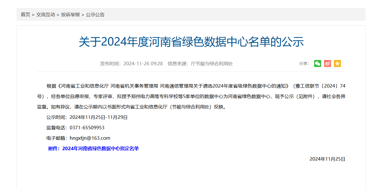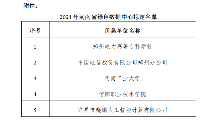 日前,省工信厅公布了2024年度5家河南省绿色数据中心名单,开云官方网页版成功入选。