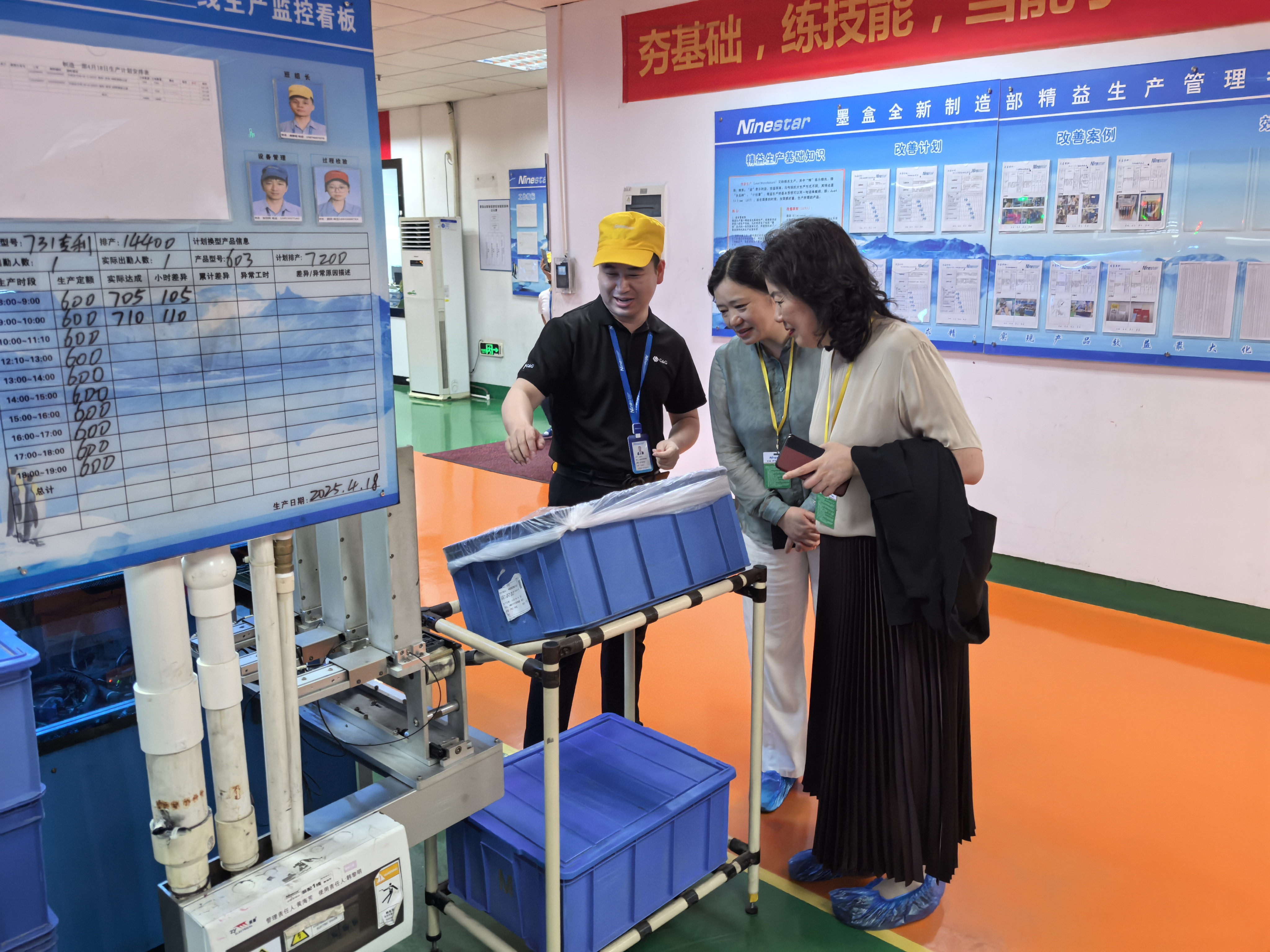 在纳思达股份有限公司,蒋有红一行参观了企业智能化生产线,深入了解实习生生活和工作环境。座谈会上,校企双方就"订单式培养""双导师制"等合作模式、实习生岗位配置、职业发展通道及生活保障等细节深入磋商。蒋有红强调将构建"教育链+产业链"协同机制,推动人才培养与企业需求精准对接。