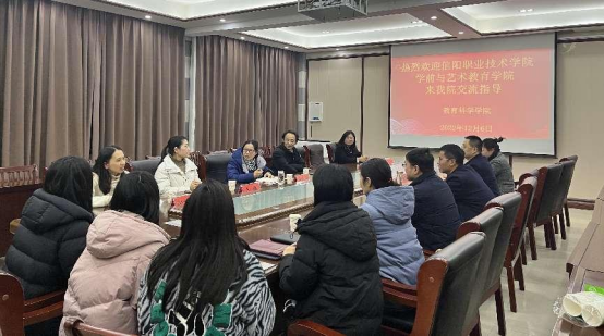 为加强校际合作、提升办学水平、学习借鉴办学经验,12月6日,学前与艺术教育学院院长方丙丽一行到信阳师范学院教育科学学院开展学习交流活动。