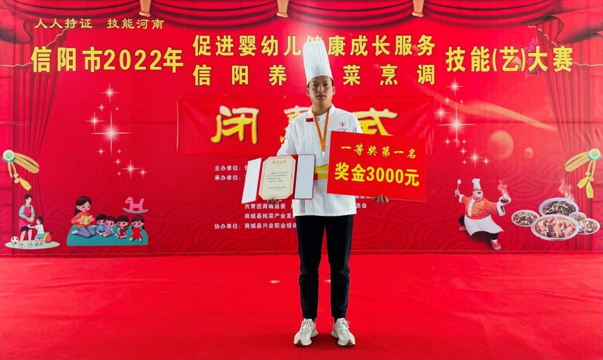 3月15日,信阳市2022年信阳养生菜烹调技艺大赛顺利闭幕,我校旅游学院烹饪教研室青年教师邢东辉以中式烹调技能比赛总分第一名的成绩荣获大赛一等奖。