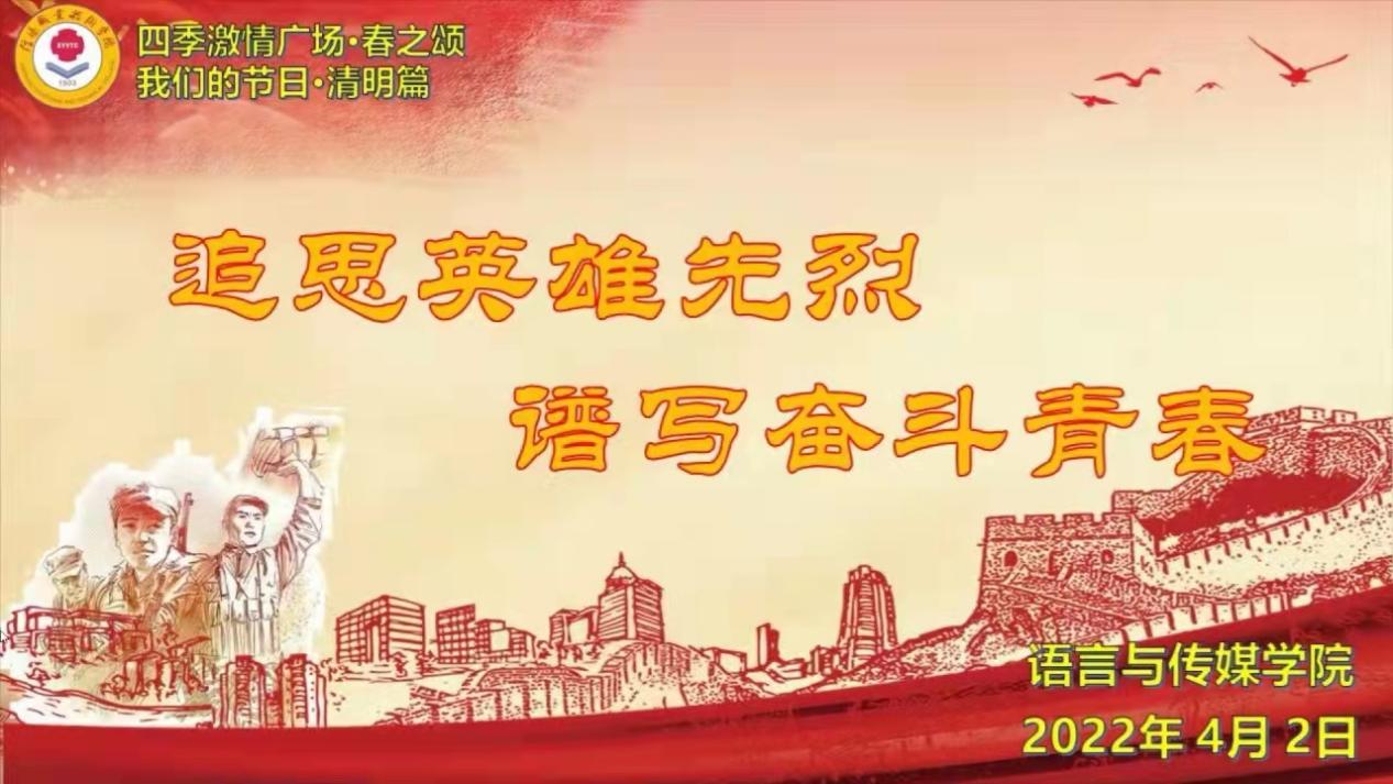 追思英雄先烈,谱写奋斗青春。4月2日晚,语言与传媒学院延续传统,利用钉钉平台举行“四季激情广场·春之颂”线上朗诵会活动。学院师生近2000人通过线上直播的形式观看精彩纷呈的节目,活动直播间内热闹非凡,点赞次数达13.4万。