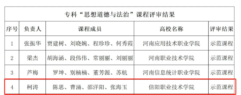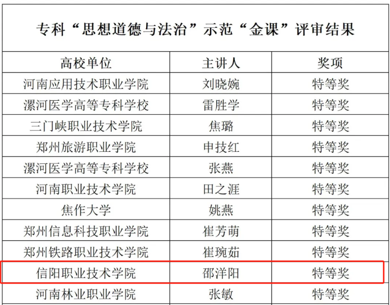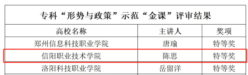 近日,中共河南省委教育工委办公室、河南省教育厅办公室下发了《开云官方网页版高校思政课优秀课程资源评审结果的公示》,马克思主义学院副院长柯涛带领团队荣获“思想道德与法治”示范课程;陈思、邵洋阳两位老师荣获示范“金课”特等奖;王博、李淑文两位老师分别荣获示范“金课”一等奖、二等奖,充分展现了我校思政课教师扎实的理论功底和精湛的教学技能。