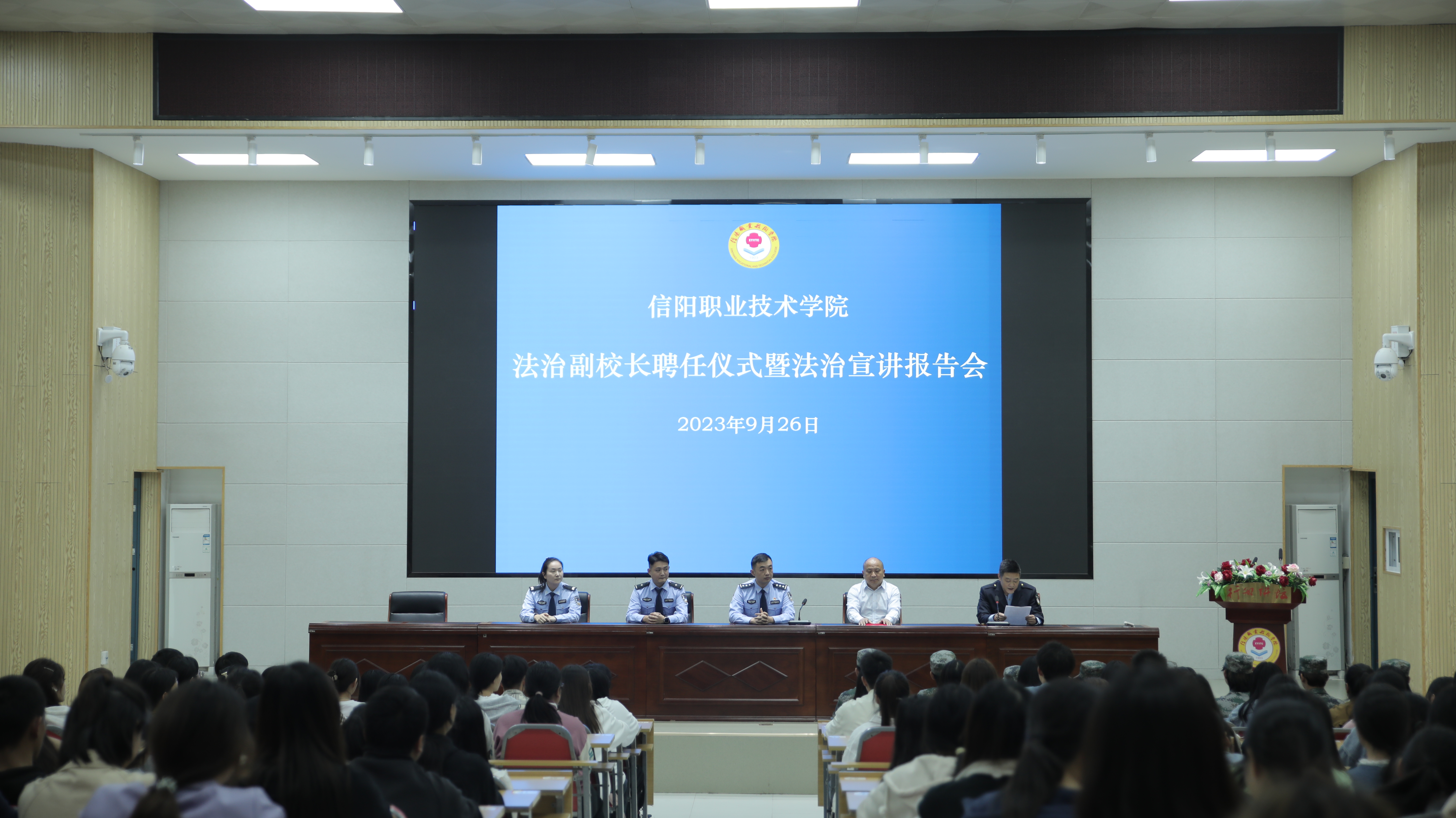 为进一步做好我校安全教育工作,强化师生法治意识和安全意识,9月26日下午,我校在医学院行知讲堂举行法治副校长聘任仪式暨法治宣讲报告会。我校党委委员、工会主席黄新及师生300余人参加了会议。会议由安全保卫处处长刘铁军主持。