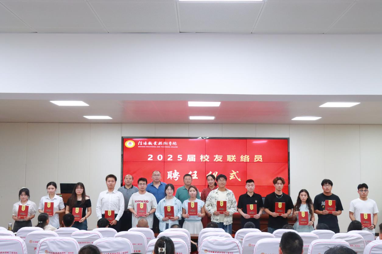 6月19日下午,我校2025届校友联络员聘任仪式在商学院多功能报告厅举行。校友办公室主任于永国、副主任黄硕、刘洋,各二级学院校友会会长、副会长、就业专干、毕业班辅导员及2025届校友联络员共100余人出席。仪式由刘洋主持。
